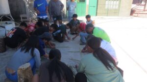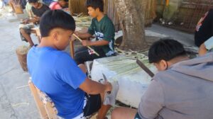 Students from Holy Rosary High School prepare bamboo materials for kig-it, egtap, and kayas